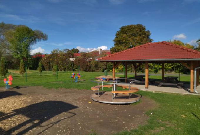 Hřiště bylo prodlouženo o 11 metrů, hlavním prvkem je velká čtyřvěžová sestava, kolotoč, velká houpačka s dvěma sedáky a hnízdem, dvě houpadla a pískoviště. Hřiště jsme se snažili vytvořit tak, aby bylo využitelné pro děti různého věku. Přejeme si, aby se tam dětem líbilo a prožily tam pěkné chvíle. Dalším přáním je, aby se hřišti vyhýbali vandalové a zůstalo krásné a funkční.